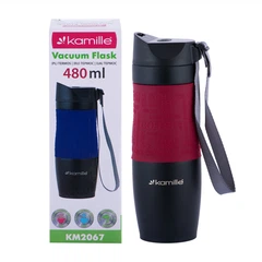 Термочашка 480мл з TPR вставкою і ремінцем нержавіюча сталь мікс KAMILLE 2067